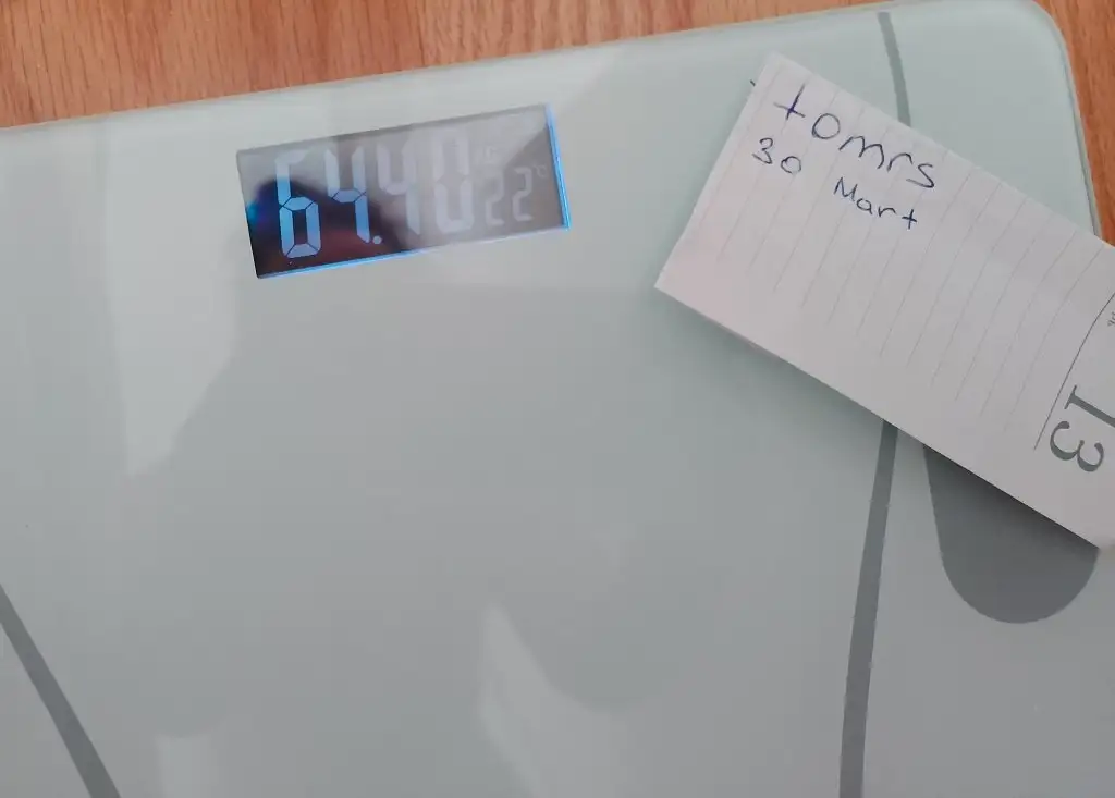 Aslında oruç değil misin akşama tartı atsan. Üstün giyinik ve başka bı tartıda daha az çıkıyorsun