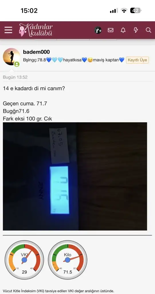 Bir zamanlar bana gülüyordu birileriSorun değil tatlım anlaşıyor ben de 84 yazmışım uzun zaman o kilolarda kaldığım için oluyor