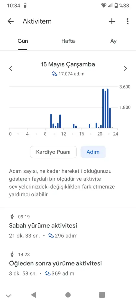 Akşam yemeği yemedim , 17 bin yürüyüş 5 bin okula gel git çocukları parka götürdüm tempolu yürüyüş değildi, 12 bin adımı tempolu yürüyüştr