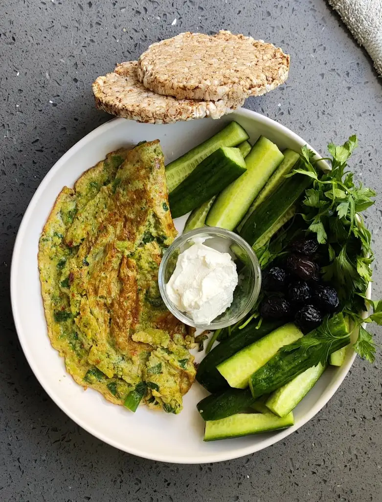 Brokoli ve yeşil soğanlı tek yumurtali omlet,labne,zeytin, karabuğday patlagi ve bonus yesillerim