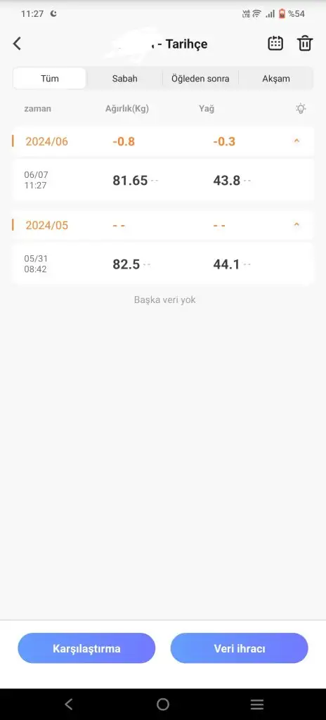 Ölçülerimi aldim baya azalmis demek tartiya yansimiyor