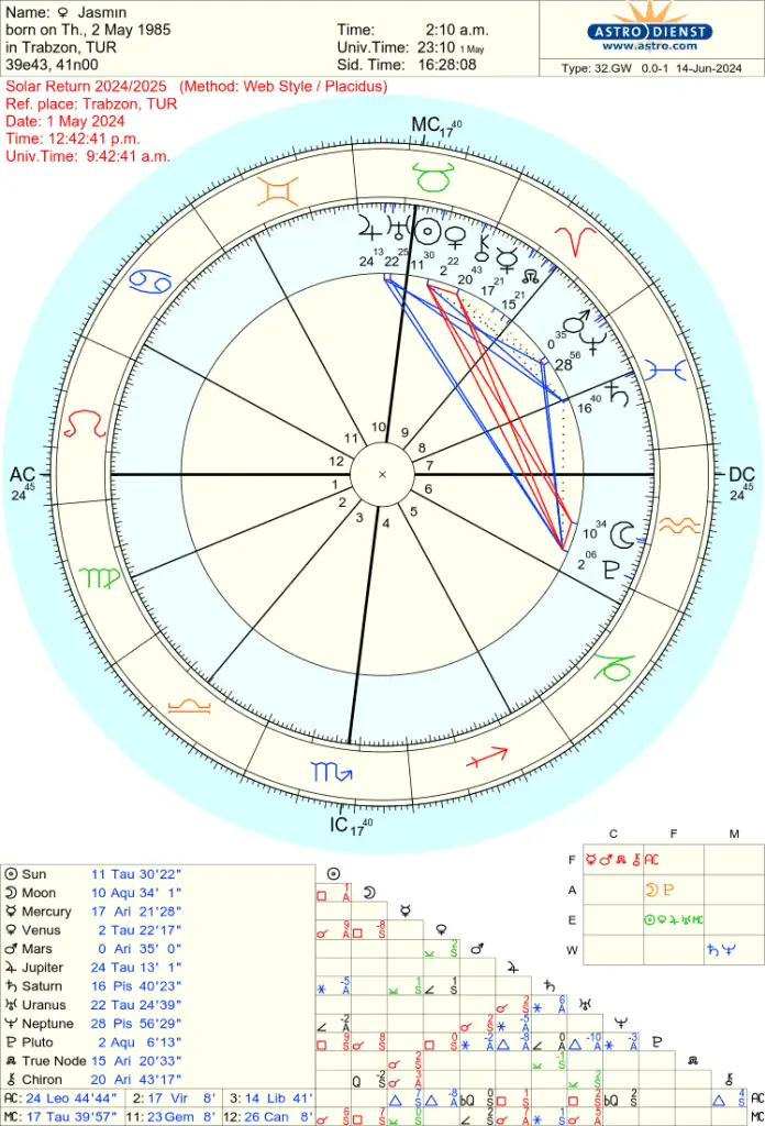 solarda aslan yukselımıs yedıncı ev. evlı olmasanız evlenebılrsnz derdım. solarda yan gunes donusu harıtalarımızda hangı ev yukselmısse, 2024/2025 bandında, bir sonrakı dogumgunumuze kadar. o evın konuları ıle ugrasırız. sıze yazıyorum bu sene sızın ıcın COK ONEMLI bır sene. cunku kose ev yukselmıs.. 1,4,7,10 kose evlerımz on plandasınız. Network ve iş ağı olarak 7. evin yükselmesi ya da 7. evde gezegen olması da iş görebilir. Çok kişiyle tanışabilirsiniz, bu kişiler kariyer anlamında size kapı açabilir. Burada yanı yedıncı evınızde ayınız var, bır kadından (anne ablanız da olabılır) ıs anlamında destek gorebılırsınız. veya evlılıgınız le ılgılı bır sorun olur onlar araya gırer, cozer gibi. hemen karıyer demısken meslek akerıyer anlatan 10c evnıze bakmak ıstedım. 10. evde uranus var bu anı bır degısım ve anı bır kararla hareket edeceksnz, rısk alacaksnz demek. yorumuna baktım 10. evdeki Uranüs: Ani mesleki değişim, ani iş değişimi, açıları çok zıt veya kare açı almışsa aniden işten çıkarılma verebilir. Uranüs burada değişime karşı sabrınızı sınayacaktır. Aniden yer değiştirme veya taşınma durumu da olabilir.