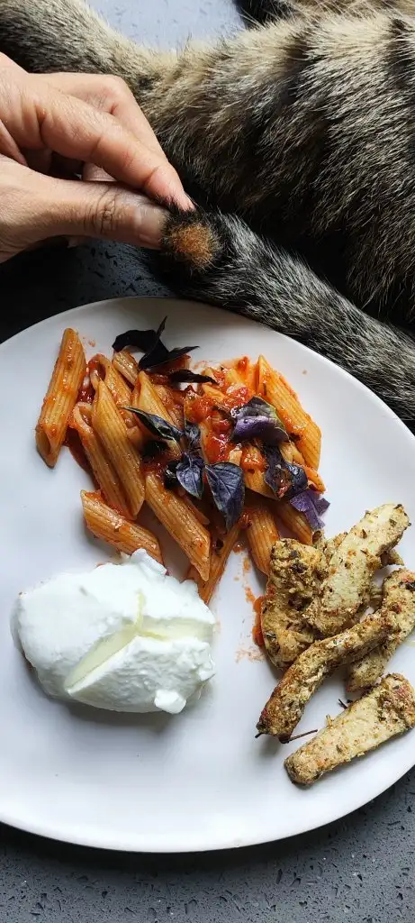 Pakizemin kuyruk ucundan ilham alarqk hazirladigim reyhanlli domates soslu 2 yk tam bugday makarna