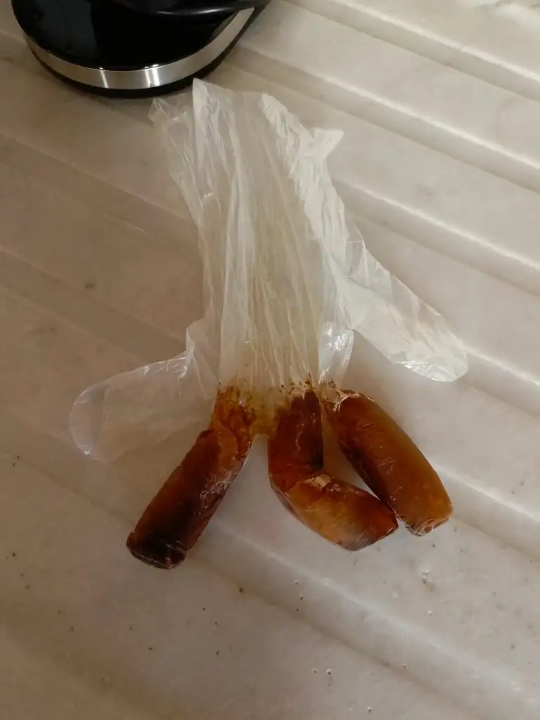 (Filtre kahveyi yapıp şeffaf eldivene koyup bilek kısmını bağlayıp dondurdum)