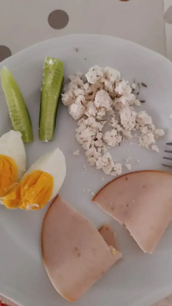 Salatalik -domates-biber ve sarimsaktan salata yapmıştım. Biraz ondan yedim ama ölçü veremiyorum.