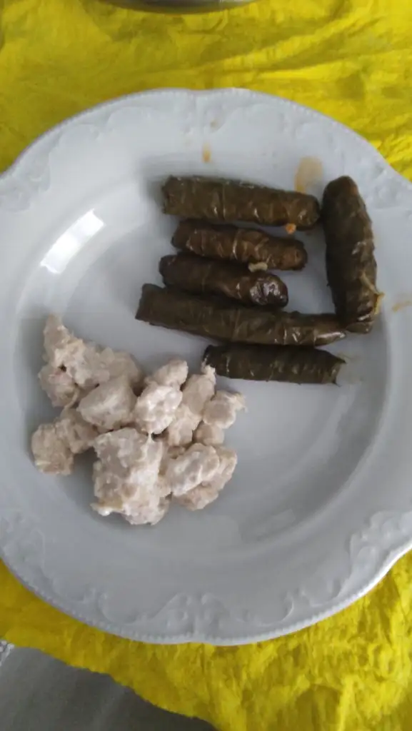 Az kremalı tavuk 5adet dolma (tabakta 6 tane ama birini çocuğum yedi)