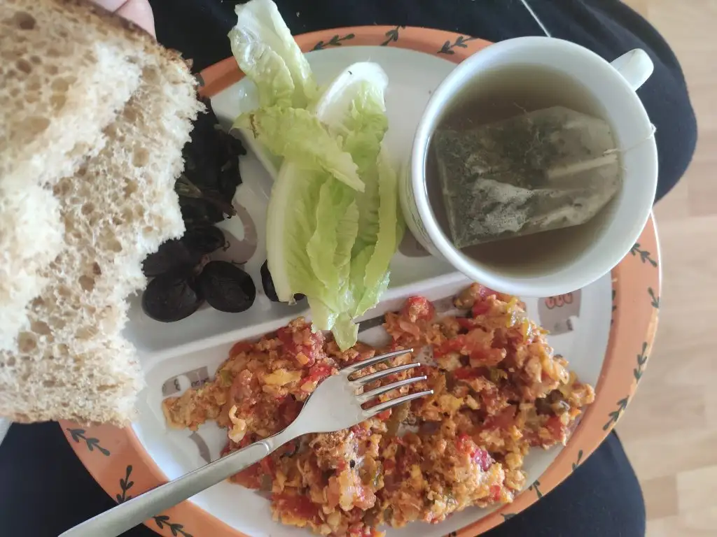 Bugünkü kahvaltım saat 11.30-12.00 arasiydi. Fotoğraftaki gibiydi.