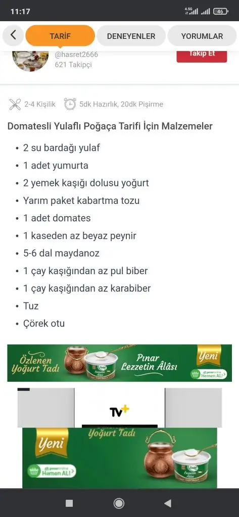 17.00 2 bardak ayran, fındık