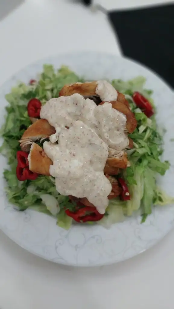 5 kasik kabak , 1 kase sarimsakli yogurt+ 2 ceviz + dereotu