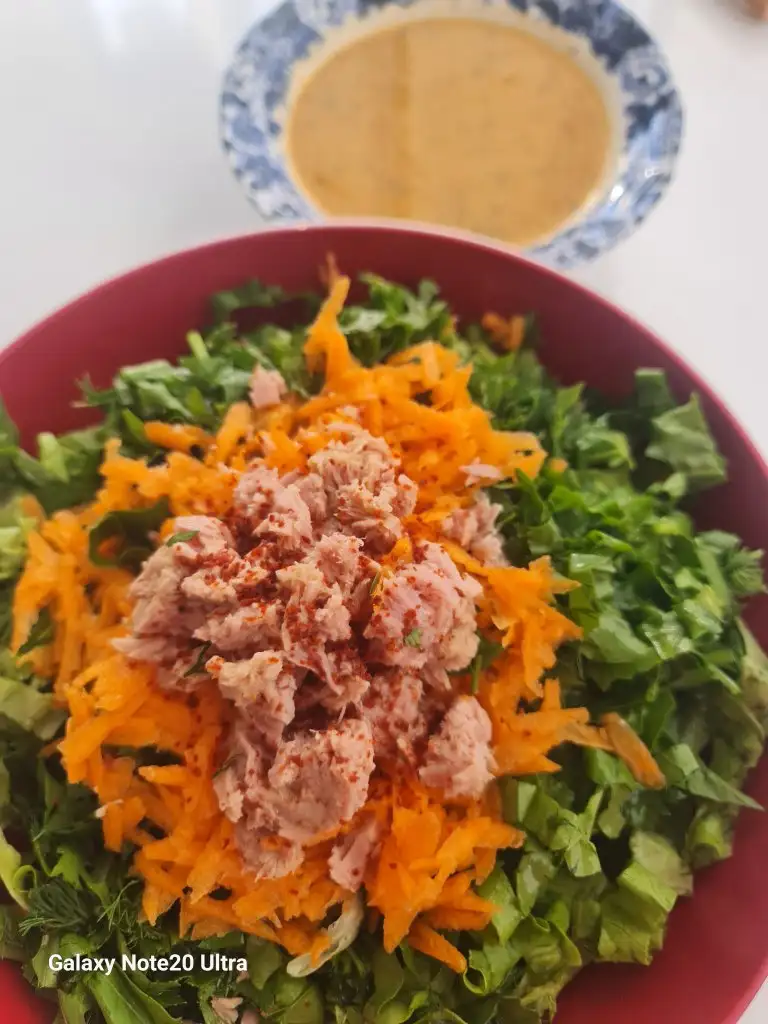 75 gr ton balığından bol yeşil salata(yağını süzdüm)