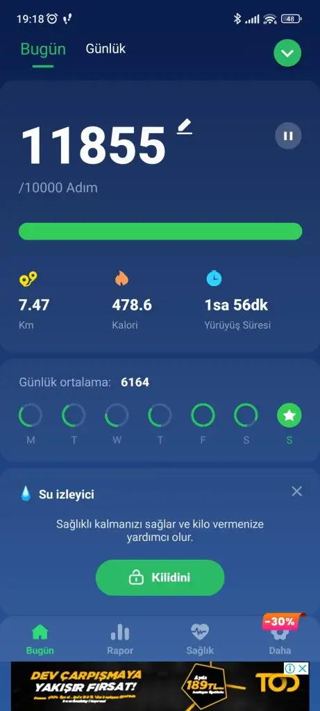 Adım 5000 (grip oldum o yüzden spor yapamıyorum kendimi iyi hissettiğimde telafi etmeye çalışacağım )