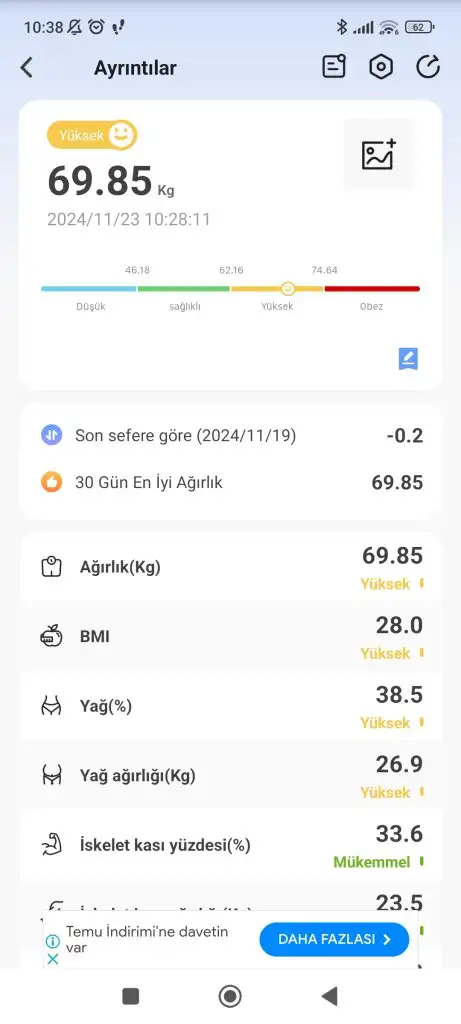 Fakat tartım bozuldu tartı değişikliği yapmak zorunda kaldım tartıyı ilk aldigimda denemiştim yeni tartım 600 Gr fazla gosteriyordu şimdi nasıl edecez