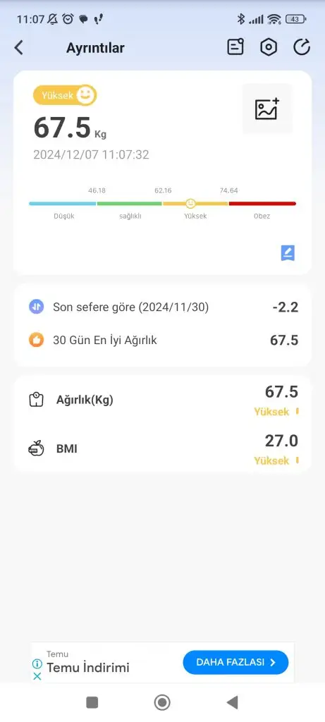 Bugün ki tartı sonucum