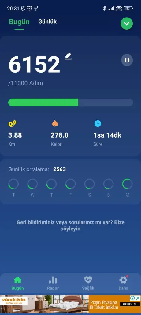Adım: 5123 toplam (spor yaparsam güncellerim)