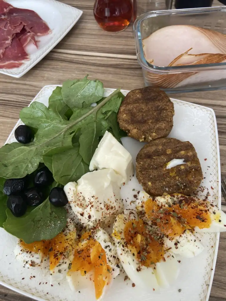 Spor sonrası bol proteinli bir öğün, 3 adet hind füme ve 2 dilim de pastırma yedim.