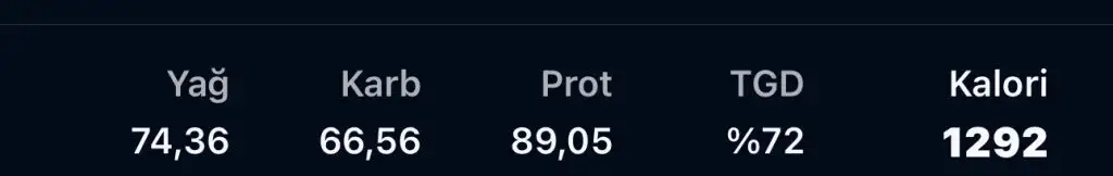 Protein fazla yemeğe çalıştım ama durum aşağıdaki gibi yine benim için çok iyi