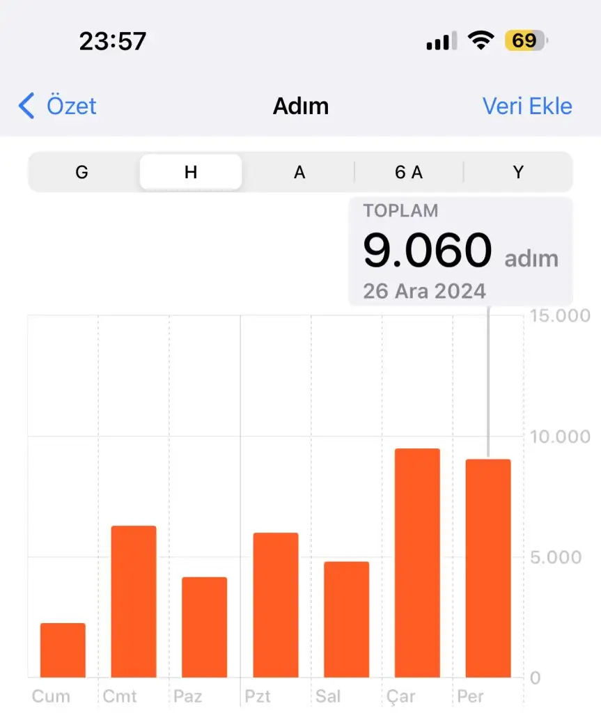 Geçen haftadan sadece 1 gün varmış 10.000 adım veya fazladan 20 dk spor yeterliBoncuk2307 benim spor cezam geçen hafta ve bu haftadan ne kadar var? Havalar soğudu diye çok yürüyemedim