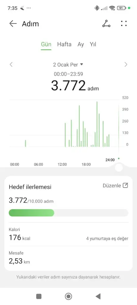 3 litre su 2.800 adım(saatim akşam geldi o yüzden kurduk ettik derken hemen takamamıstım)