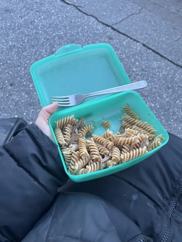 Bugün bir arkadaşla buluştuğumuz için akşam yemeğimi yanımda taşıdım ve bildiğiniz sokağa oturup yedimerkenden bitirmek istedim yemek işini yarın tartı günü bakmak için. Arkadaşım börekler tatlılar çıkardı, canım o kadar çekmedi bile, belki tok gittiğim içindir. Normalde aç olmasam bile hepsini yiyordum.