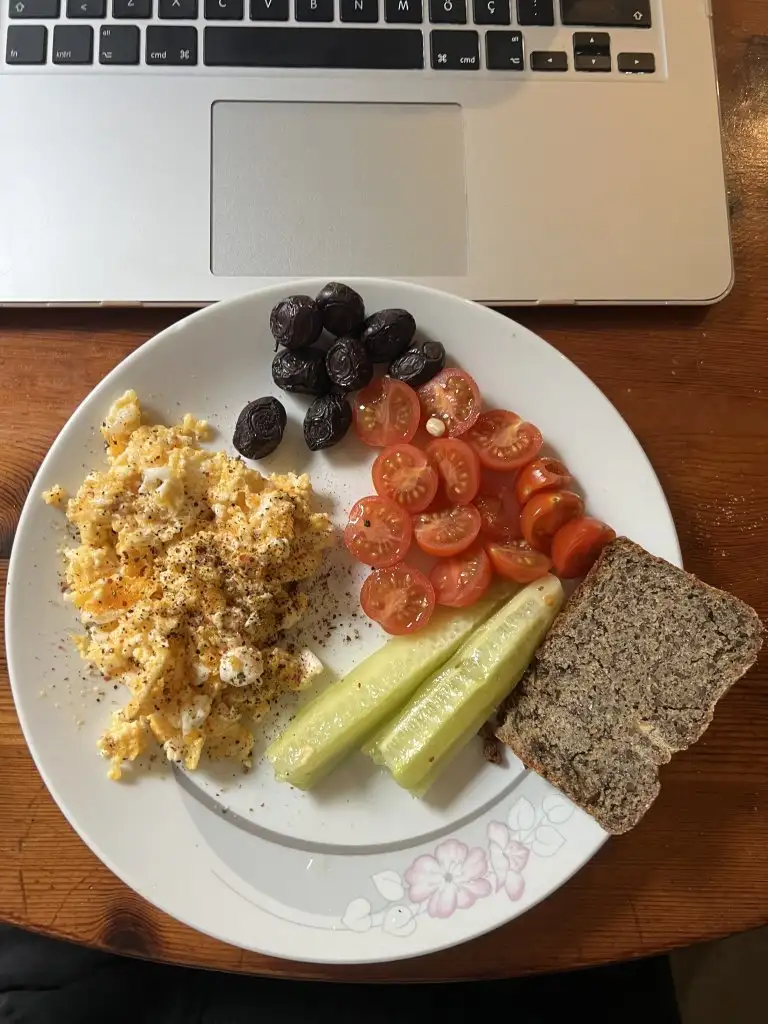 10.30 iki küçük dilim tb ekmek. Beyaz peynir bir parça, yumurta, 3 zeytin