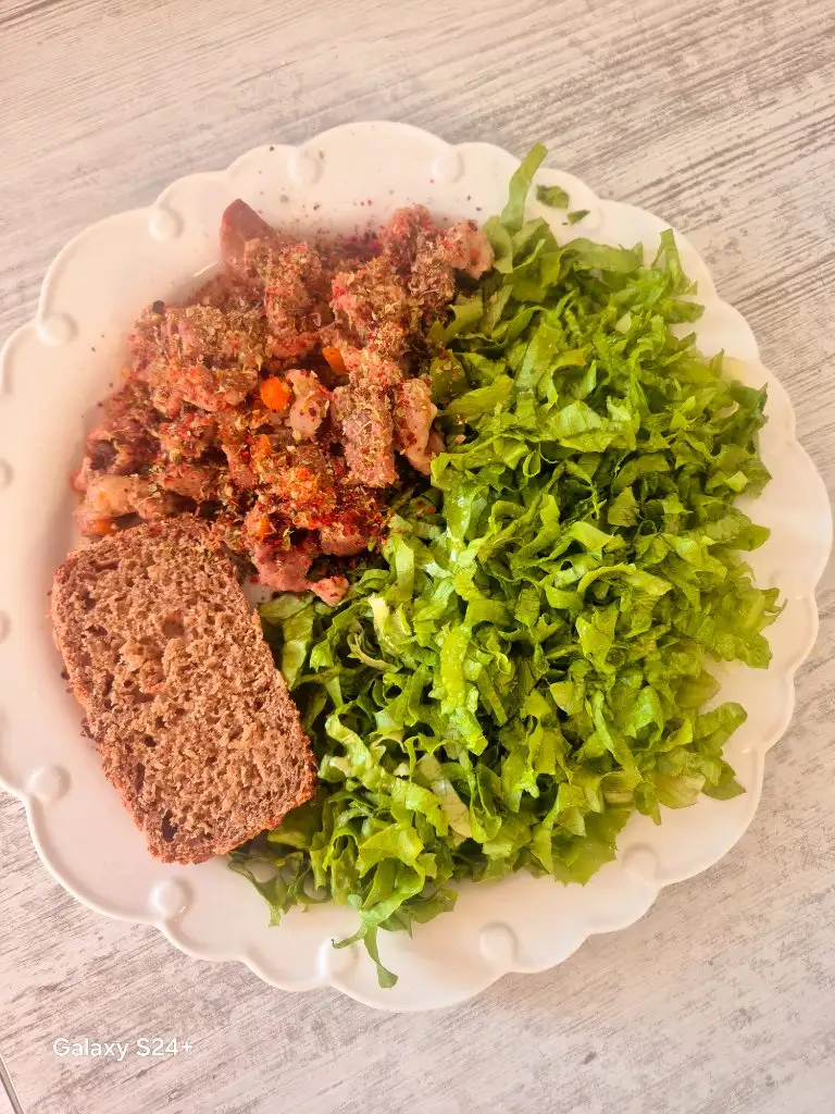 Akşam (20:00) 5-6 köfteli domatesli sulu yemek + 2 full kaşık ince bulgurdan pilav gibi bir şey