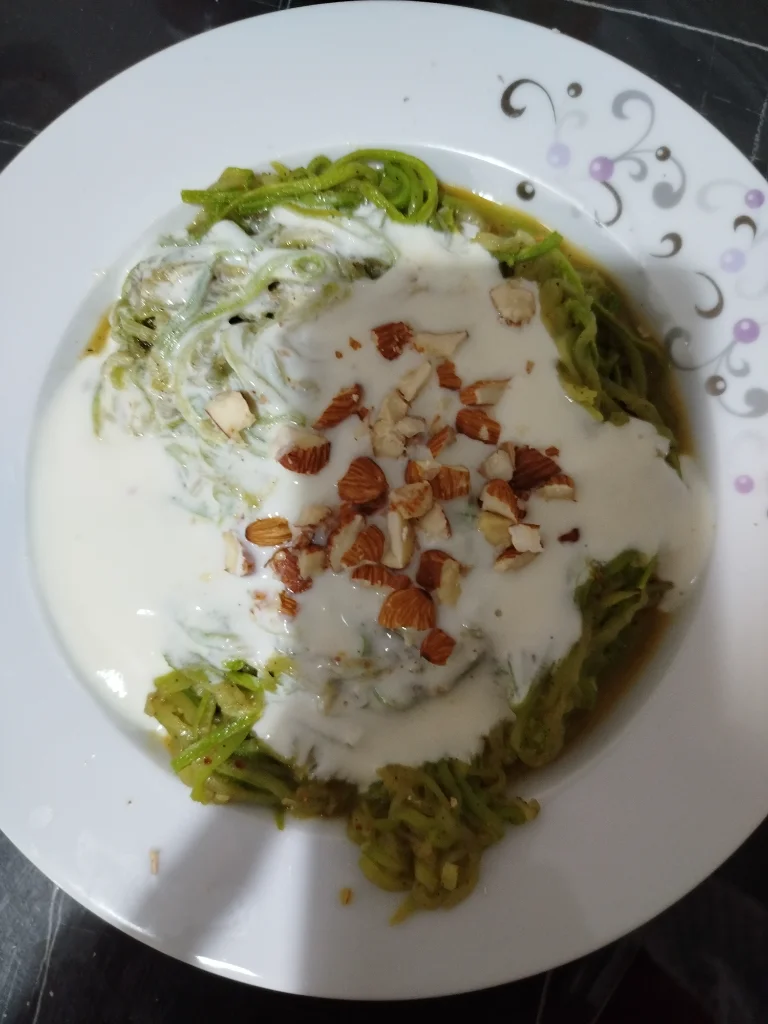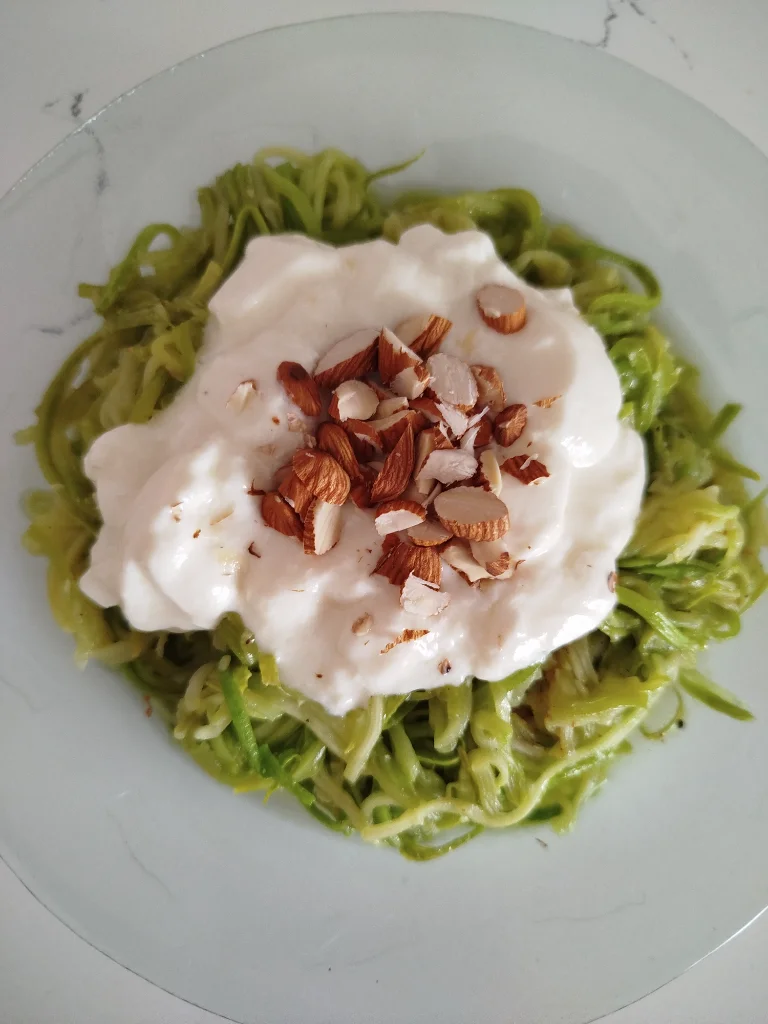 13.30 1 tabak kabak spagetti üzerine 3 kaşık yoğurt 6 badem