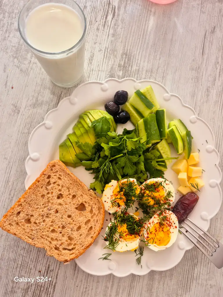 Sahur : 2 yumurta, 2 dilim peynir, 4-5 ceviz, 1 bardak kefir, salata