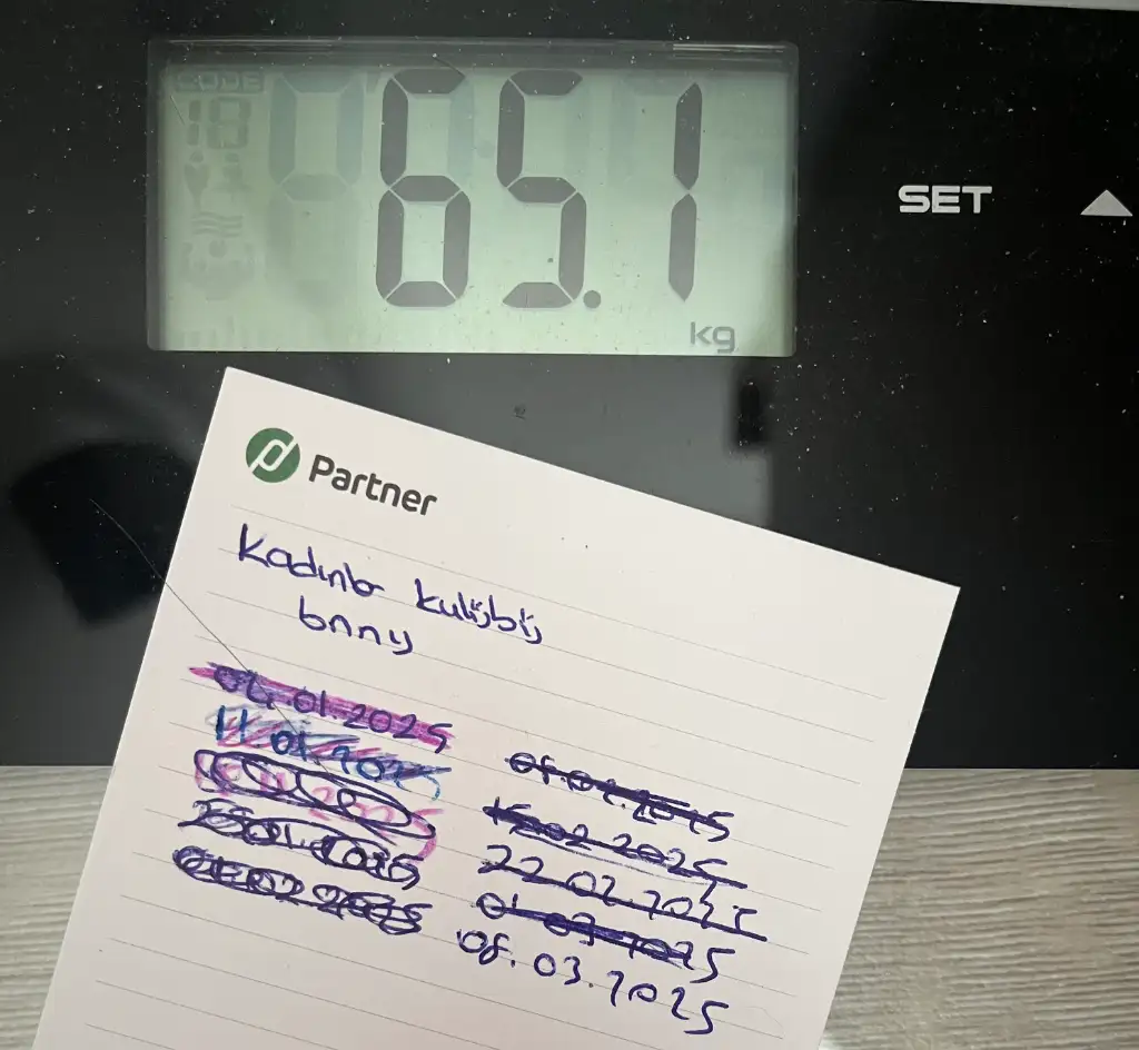 Geri dönüşün hayırlı olsun canımKaptanlarım tartı fotoğrafımı da ekleyeyim aslında hafta içi daha eksi deydim ama dün yarım kase kadar bulgur yedim sanırım o etkiledi olsun, 65.1 ile ayrılmıştım 65.1 ile geri döndüm