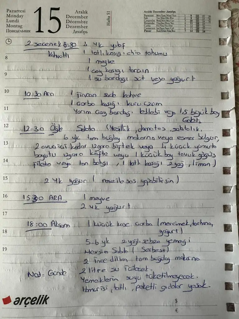 iki listem var bak istersen, hangsinden başlarsan onunla bitir demişti diyetisyen.Olur canım şu chatcpt ye sorduğum listeyi yapsam acep ise yarar mi ki