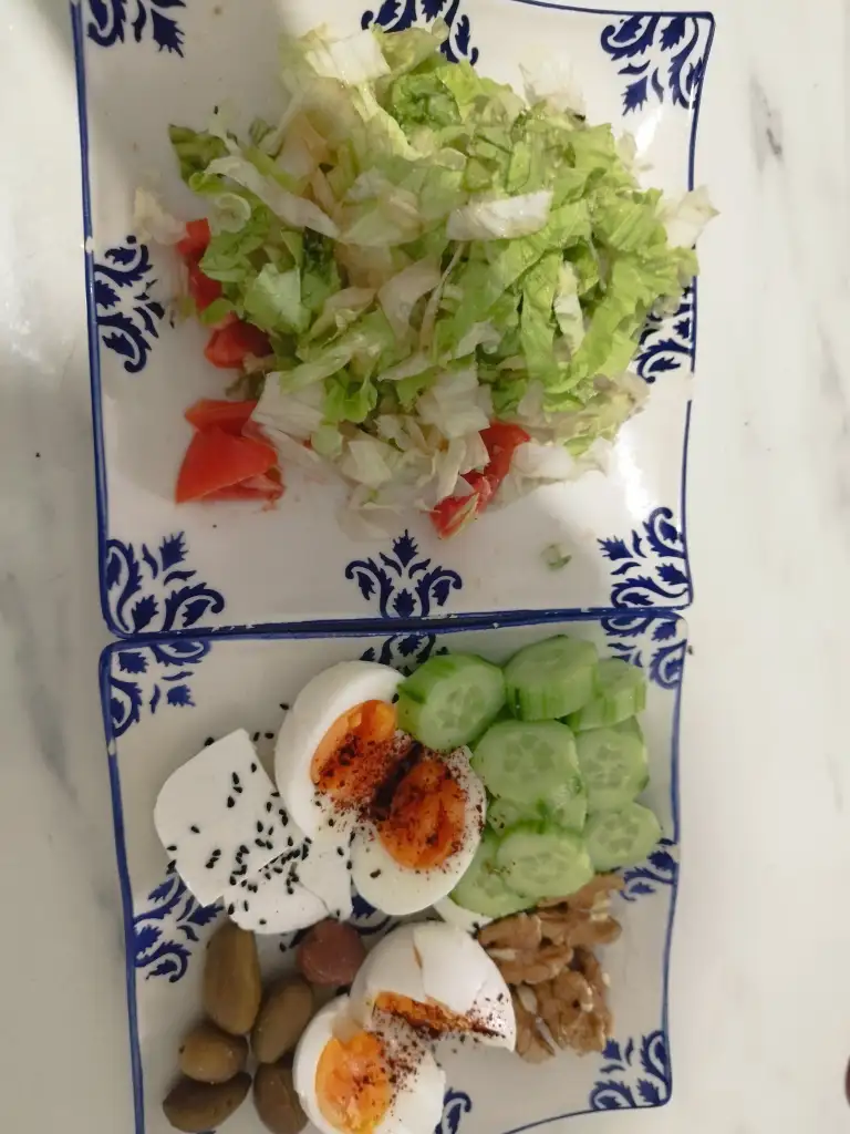 30 dk sonra 2 yumurta, peynir, 5 zeytin, ( varsa 7 badem yoksa 2 ceviz) ve söğüş sebzeleriyle kahvaltı yapacağım