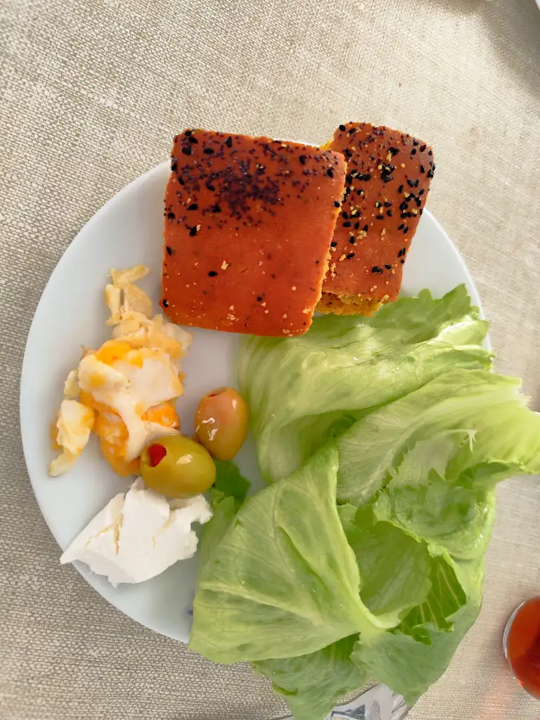 10.00 5 ctl soganlı yumurta, 4 dilim oeynir , 2 tambhgdy ekmek, domates slatalik, 1 yesil zeytin