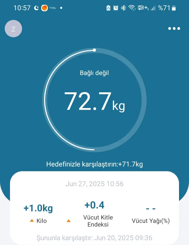 Büyük ihtimalle ödem olmuştur. Canını sıkma ödem atıcı çaylar iç geçerKızlar üzülerek yazıyorum tartıda bende görünce şaşırdım . Dün 75 i gören ben bugün 76.90 o gördüm. Ama dün gece mr çekildim ve sabaha kadar ayran ve su ictim. Onun etkisidir diye umarak bildirim yapayım