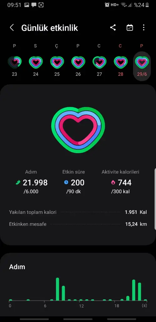 Akşam ve sabah toplam 22 bin adim