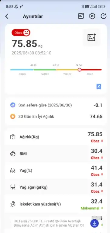 Öyle oldu canım ödem yaptı 79.400 çıktım tartıda şişlik hissediyorum hala ......biraz bulgur pirinç işine ara verecem inşallah cumaya 78li bir rakam görürümAfiyet olsun canım menü yakiyor.
