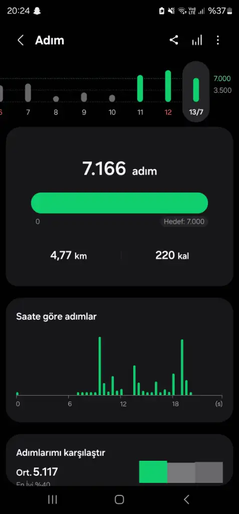 Fena bi gün olmadı . 7000 de adımım var. Spor pek yok 10 dk eliptik sadece