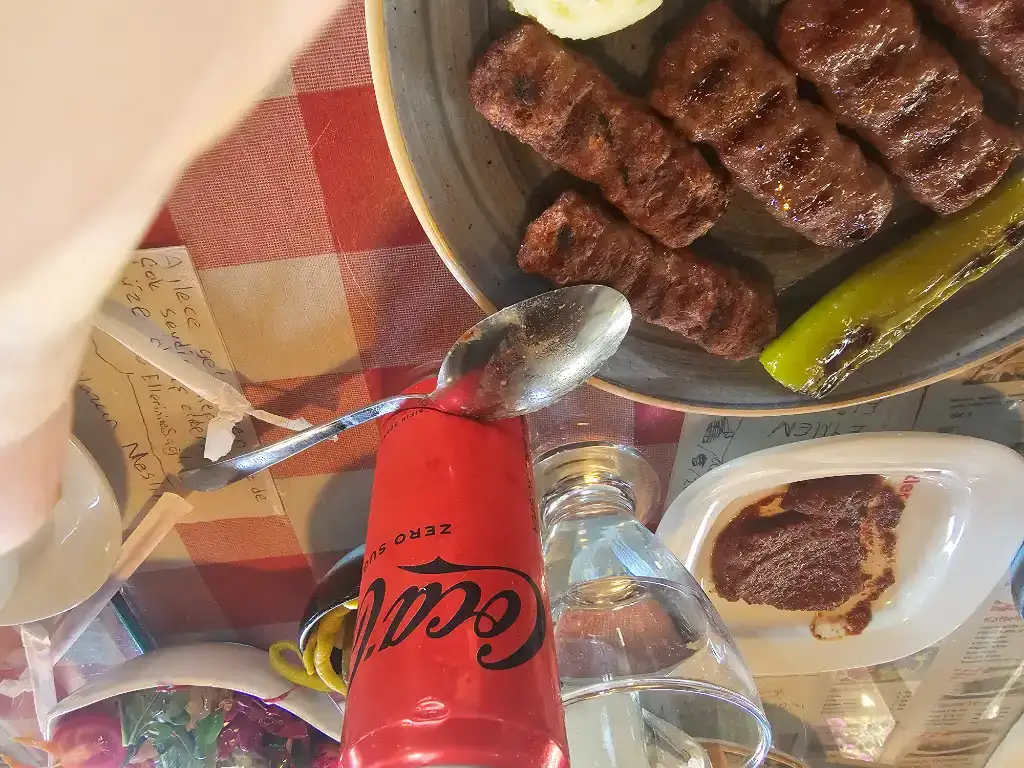 ( ve kendimi tebrik ediyorum. Normalde patates kızartması geldi, piyaz geldi masaya ama Yemedim. Onlar şişiriyor ve diyetime ters şimdilik biraz turşu ezme yedim çatalın ucuyla)