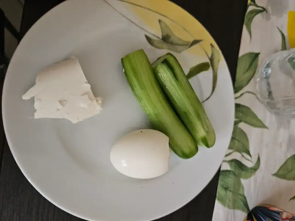 Kahvaltım yumurta salatalık ve kavrulmuş sebzeler
