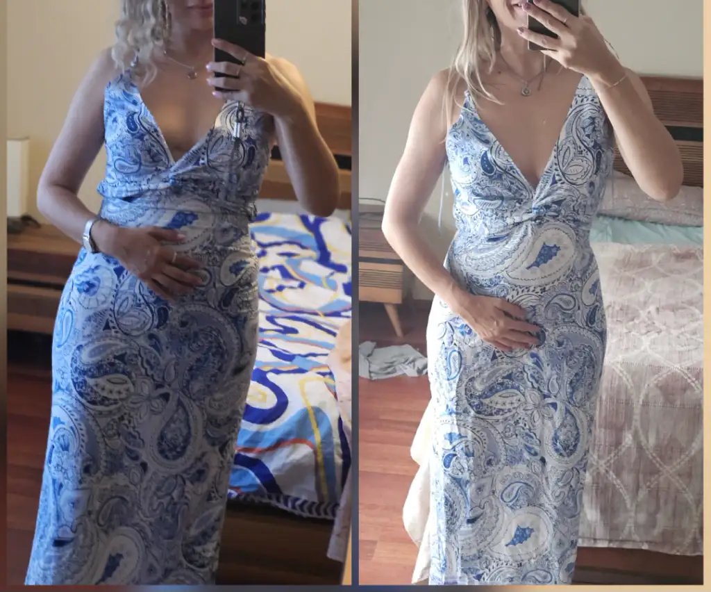 Bak bu mavi elbiseyle diyete başladığımda hareket edemiyorum. Şimdi bol geliyor.