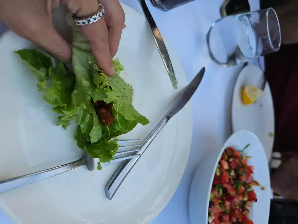 Patlıcan kavurma yanında 2 kaşık yoğurt