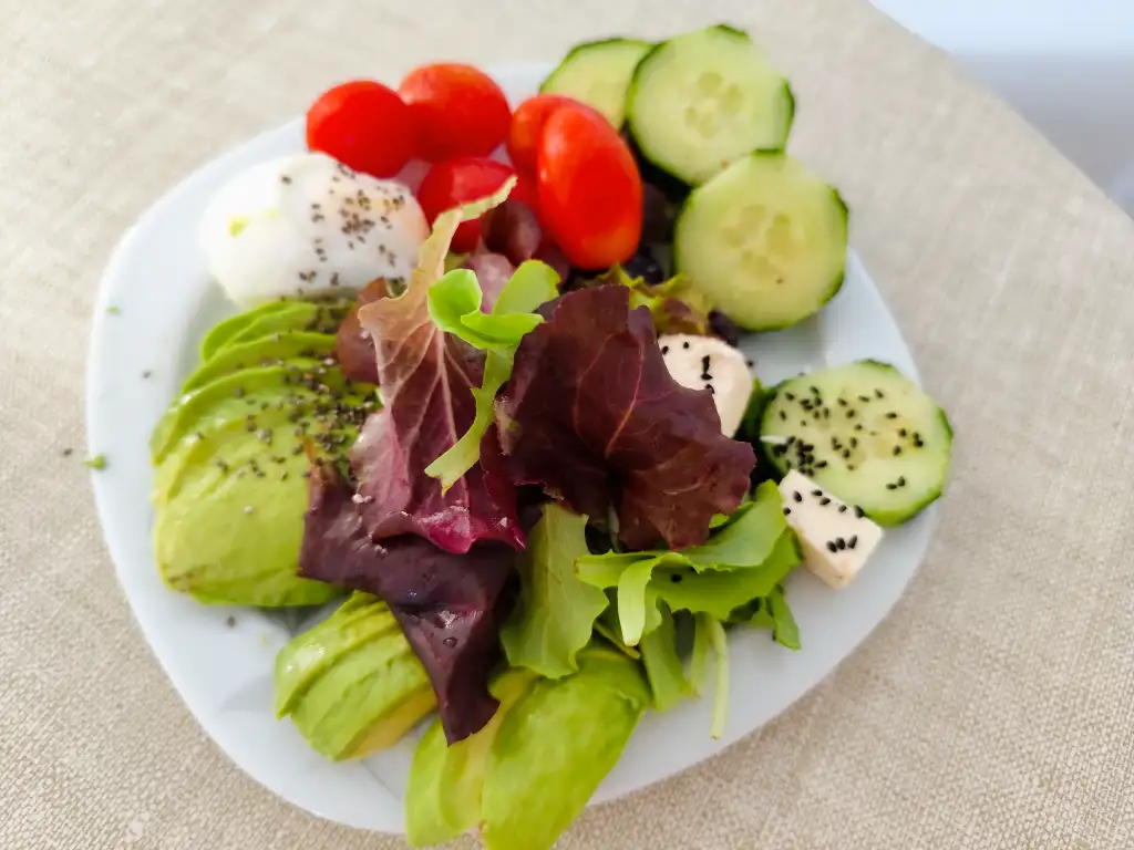 1 dilim beyaz peynir, 5–6 zeytin, 1 haşlanmış yumurta, 1 dilim çavdar ekmeği, 1 tatlı kaşığı fıstık ezmesi