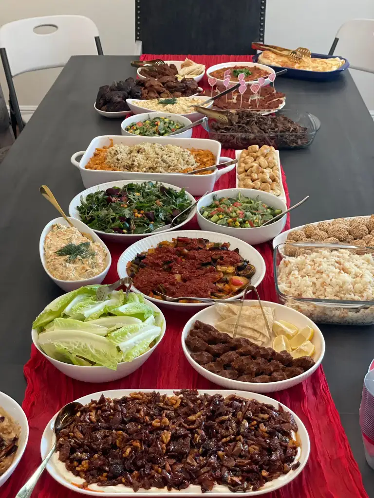 Kahvalti ve aksam yemegi yemedim.Tek ogun oglen misafirlerimle yedim.Bu masadaki her seyi tattim.Birde uzerine 6 cesit tatlimiz vardi onunda 4cesitinin tadina baktim.
