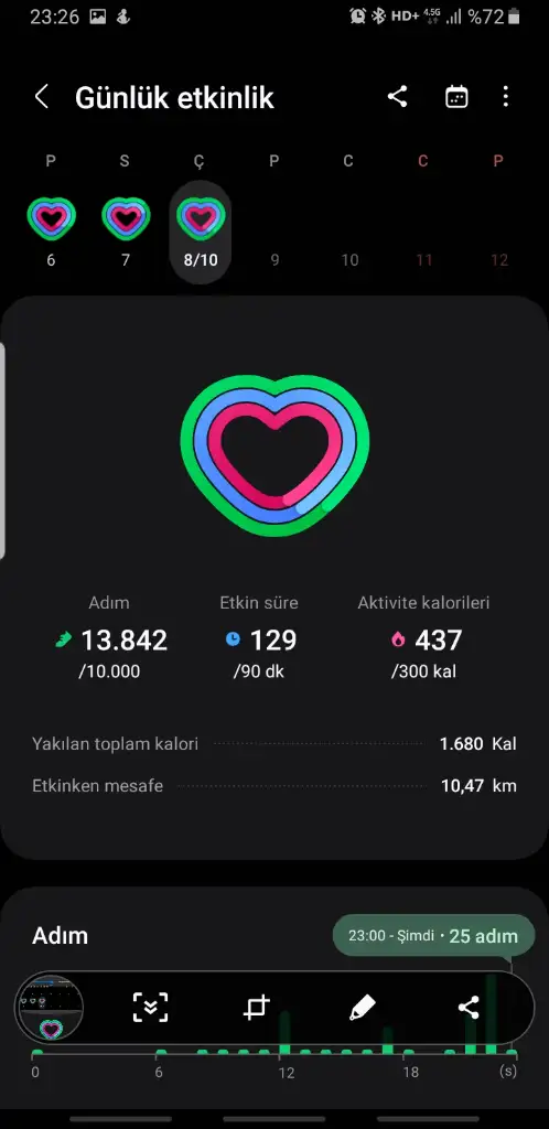 11 bin adım, bir saat yüzme 300 puan