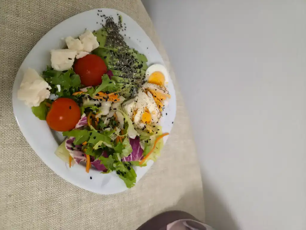 Bir dilim tb ekmek, kk peynir,peynirli yumurta,7yesil zeytin,marul ,bir adet havuç, 10cig fistik15 çiğ fındık,15 çiğ kabak çekirdeği, bir mandalina,