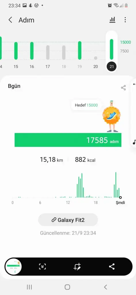 Ya yürüyüşüm vardı ama adım sayar bozuldu galiba sıfırladi kendini silinmiş