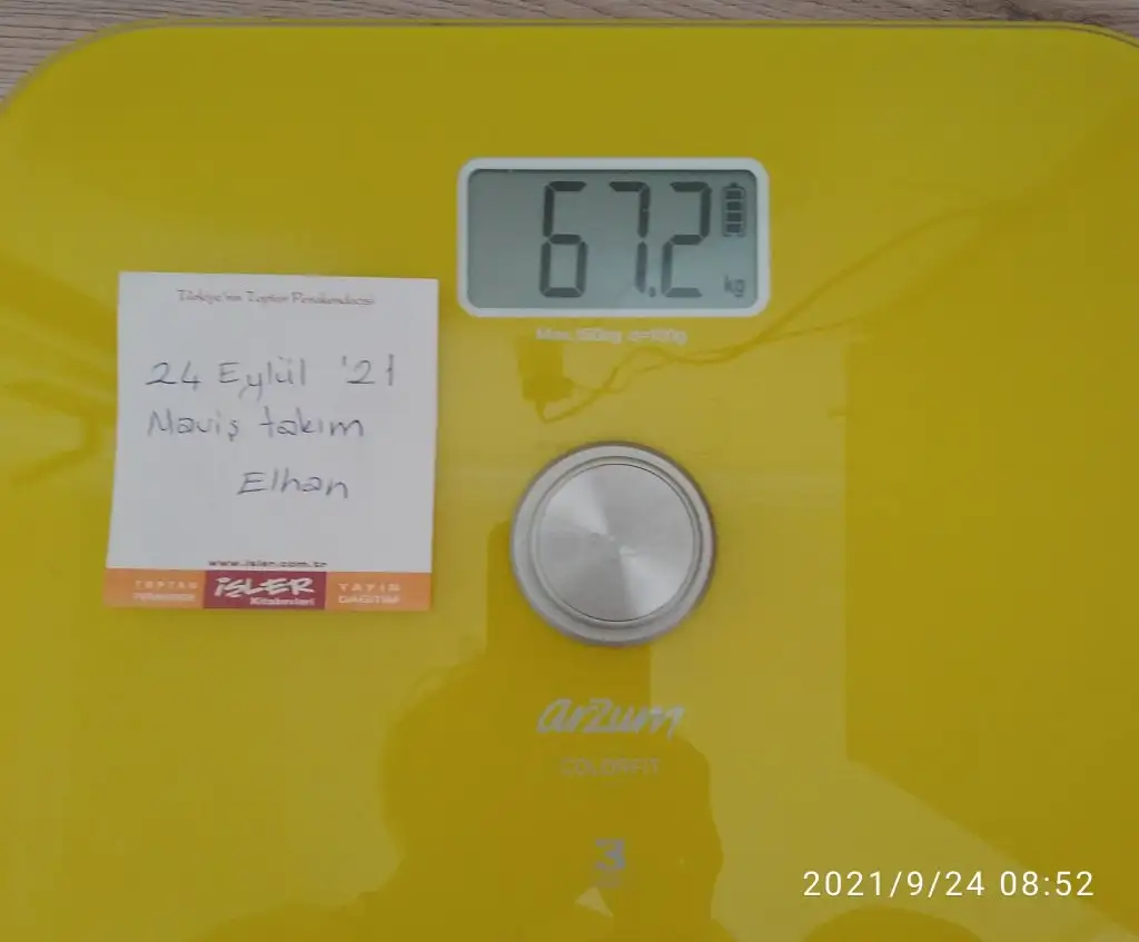 siz nasıl hemen tartının fotosunu çekiyorsunuz ben çıkıyorum tartıya telin kamera açıkta zaten inip elime alıp tartıya bakana kadar sıfırlanıyor 12 kere denedim en son kötü şeyler çıktı ağzımdan mübarek cuma günü tövbe tövbe dedim :rolleyes: üstümü giydim geldim