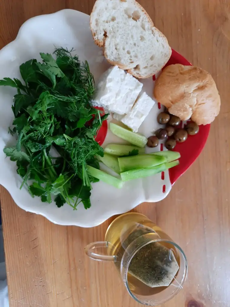 Kahvaltı: Haşlamş yumurta, peynir, 1dilim tambuğday