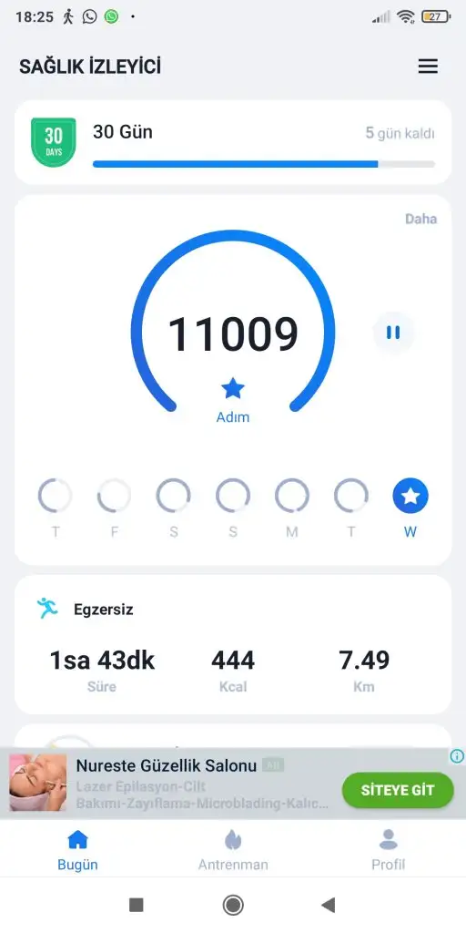 Özellikle karın simit bölgemde bariz fark var. Cardiyo- pilates birlikte hızlı sonuç veriyordu, bir de burdaki adım yarışı eklenince tadından yenmez olduTabi ki en sinir olduğum yerim kollarım hiç erimedi. 1 kg lık dambıl aldım bugün, kol çalışmalarım daha etkili olacak bundan sonra.