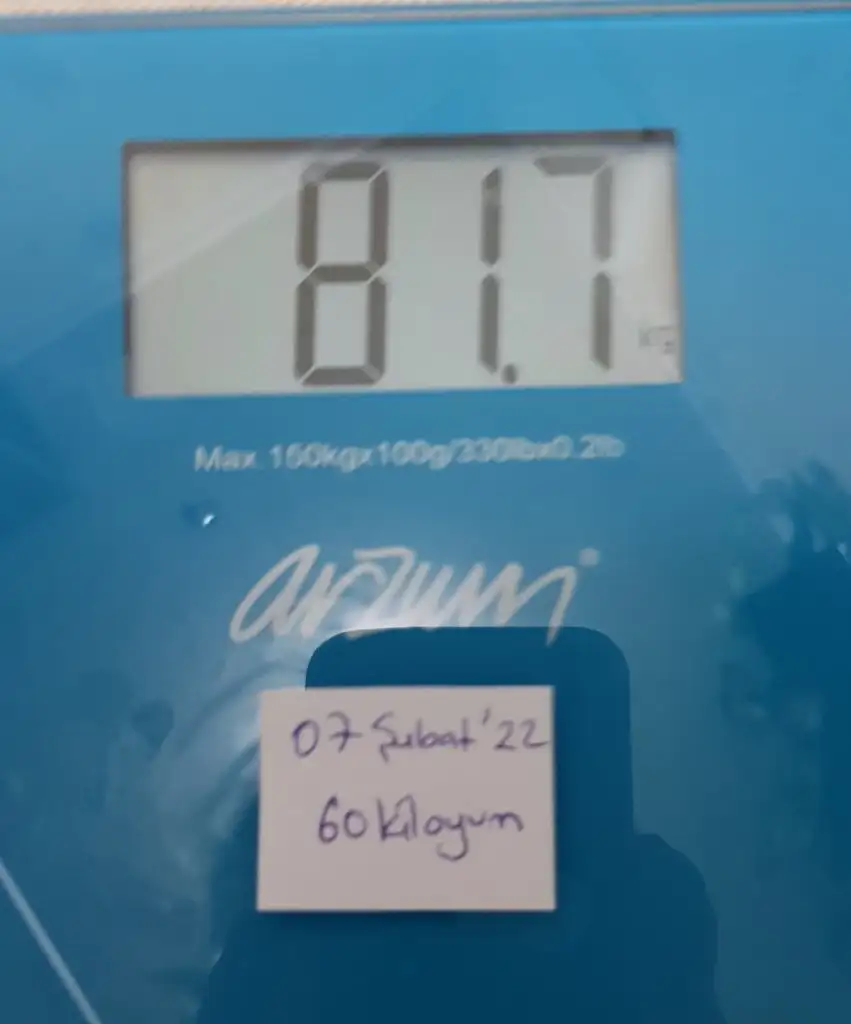 Ben de o mucize gerceklesmedi. Son cikan tartilardan degilsen eline bir cisim al tartil sonra birak tekrar tartil ben eski tartimda oyle yapardimYalniz ben sabah kalkınca tartıldım. Sonra mucize gibi wcye çıktım hemen arkasından tekrar tartıldım (bu arada törene geç kaldım bunlarla uğraşırken hahaha) aynı çıktım. Çok şaşırdım. Dedim herhalde tartı ayaklarımı tanıyorayağıma çorap giyip bir daha tartıldım yine aynı. Eee o WC noldu şimdi???