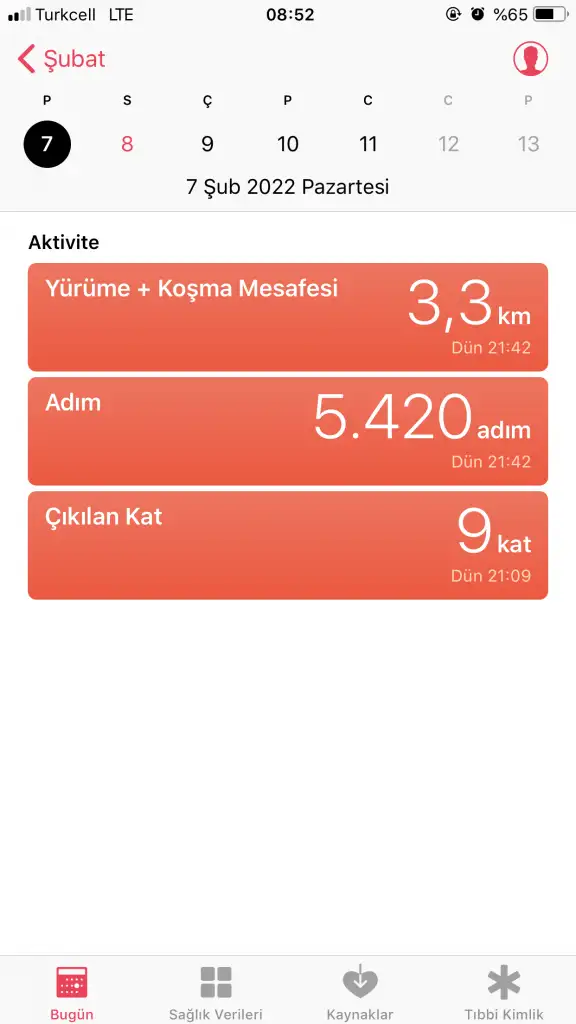 Toplamda 8693 üzeri adım attım. Dans ev işi ve zumba ile.