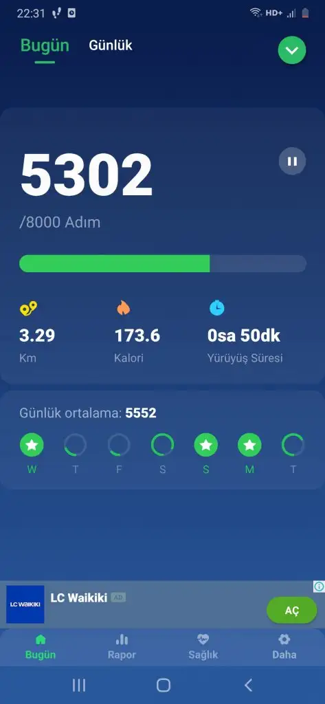 Bugün çok hareketliydim ama malesef sırt çantasında hiç adım saymamış akşama kadar dışarda islerimi hallettim oysaki